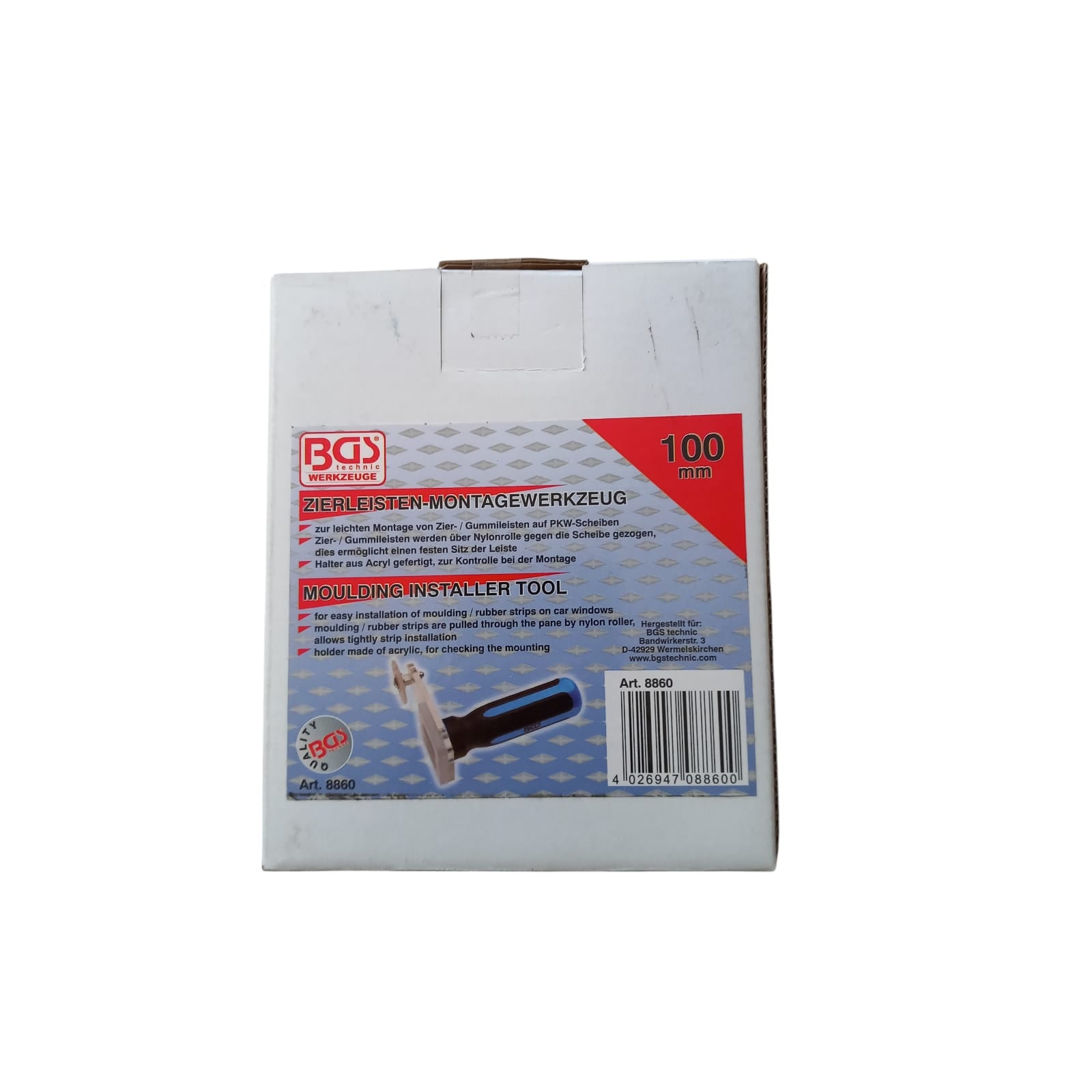 L'Utensile per Installazione Modanature BGS8860 è uno strumento progettato per facilitare l'installazione di modanature e strisce di gomma sui vetri dell'auto. Ideale per professionisti del settore automobilistico e appassionati di fai-da-te, questo utensile rende l'installazione semplice e veloce.